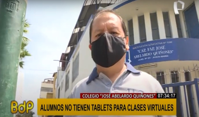 El director de la institución educativa de nivel primaria José Abelardo Quiñones ubicada en Jesús María, pidió ayuda debido a que los estudiantes no pueden acceder a las clases virtuales debido a la falta de equipos tecnológicos.