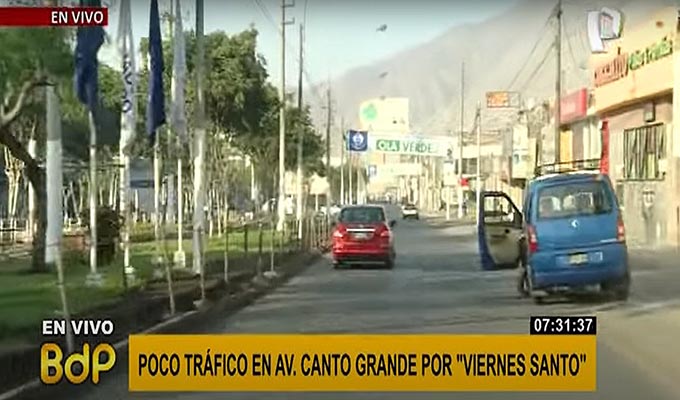 En la avenida Canto Grande, San Juan de Lurigancho, se pudo observar poco tráfico y gran presencia de transporte público. Lamentablemente, combis piratas y vehículos informales continuaron circulando y ofreciendo sus servicios, pese a las restricciones del Gobierno.