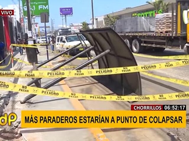 Grave peligro generan varios paraderos que estarían a punto de colapsar por falta de mantenimiento en Chorrillos. Las estructuras se ven corroídas y debilitadas por la humedad, lo cual podría generar que en cualquier momento se caigan y causen un accidente fatal entre los transeúntes.
