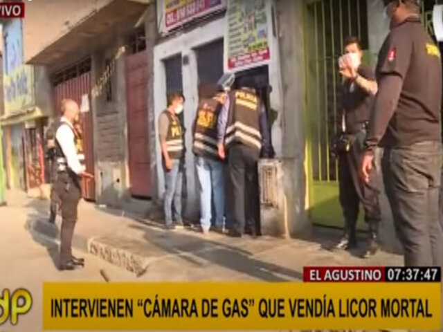 Agentes de la Policía de Seguridad del Estado intervinieron esta mañana una “cámara de gas” donde se vendía alcohol metílico. La operación se realiza en la zona de Centeno Bajo, en el distrito de El Agustino.