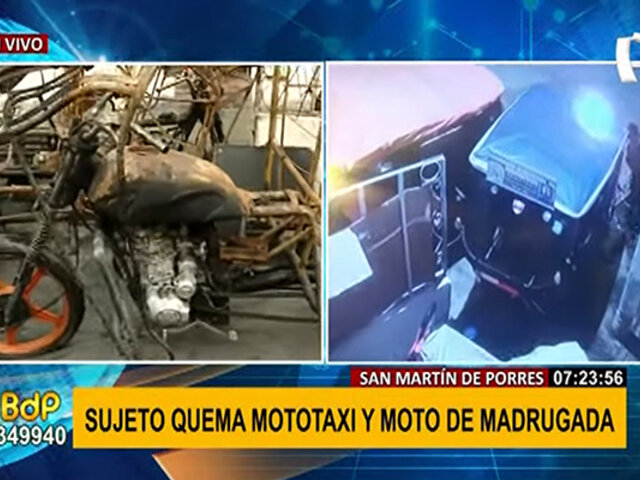 SMP: buscan identificar a sujeto que quemó mototaxi y moto