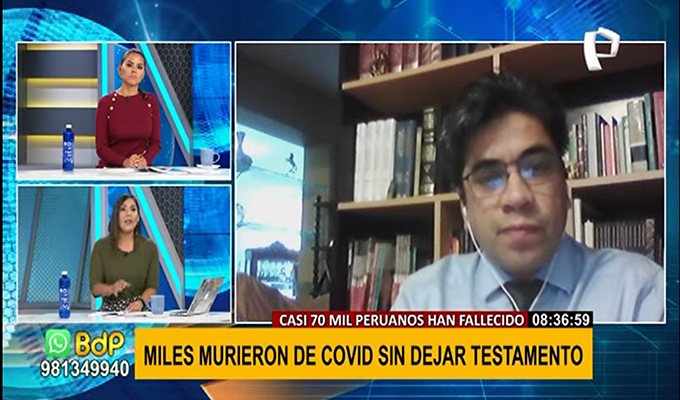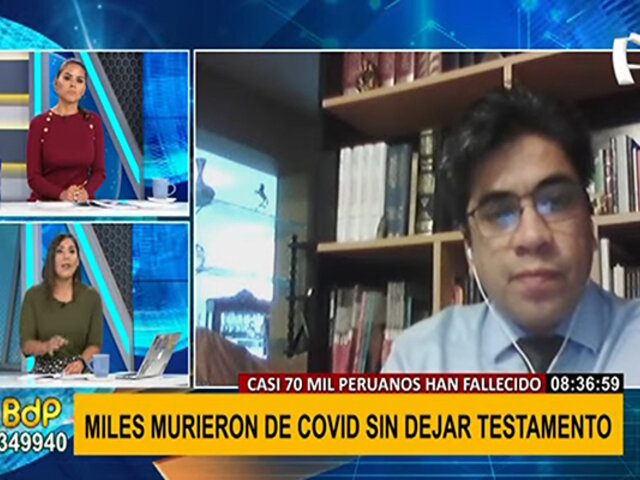Renato Ruiz, abogado de la Sunarp, estuvo en Buenos Días Perú para hablar sobre una realidad que cada día crece por la pandemia: los decesos sin dejar testamento. Muchos han fallecido rápidamente por la COVID-19 y no han podido dejar sus bienes a sus herederos de manera formal, por ello el experto explica qué se puede hacer en estos casos.