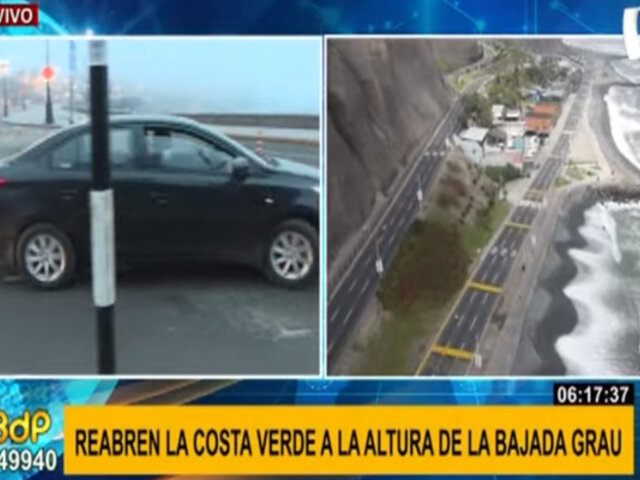 Tras una breve demora, fue reabierto el tramo de la Costa Verde a la altura de la bajada Grau, que fue cerrado debido a obras de remoción en el lugar tras producirse un deslizamiento de rocas y piedras.