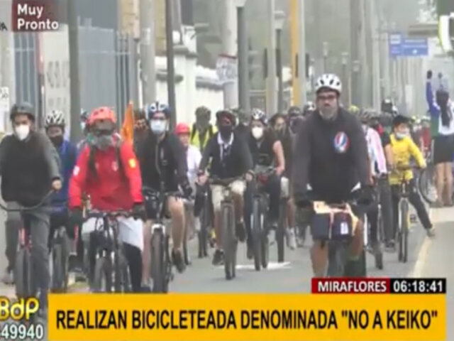Cabe resaltar, que la bicicleteada denominada "No a Keiko" fue convocada a través de las redes sociales y no se descarta que se realicen más desplazamientos similares en los próximos días.