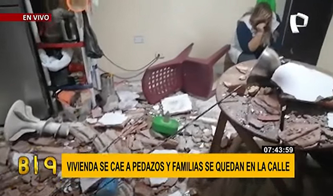En esta vivienda se encuentran tres familias que ahora deben dormir en la calle por el peligro que representa la mala infraestructura del lugar. Una de las familias tiene un pequeño negocio que levantó en el primer piso de la casa, por ello no pueden mudarse de la vivienda.