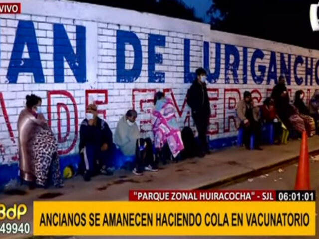 Nuevamente se presentan inconvenientes en la jornada de inmunización. Adultos mayores amanecieron realizando colas para ser vacunados en los exteriores del Parque Huiracocha, en San Juan de Lurigancho.