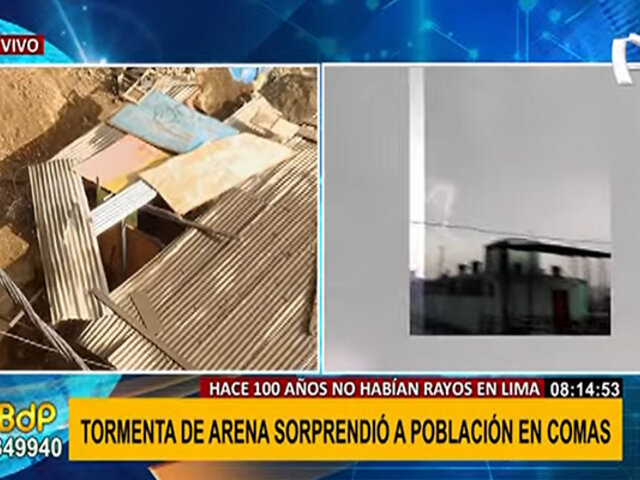 En el asentamiento humano San Gabriel, distrito de Comas, el reciente fenómeno meteorológico que sorprendió a los limeños terminó afectando varias viviendas. Además de la lluvia y los rayos, la fuerza del viento generó una tormenta de arena que dejó varias casas sin techo.