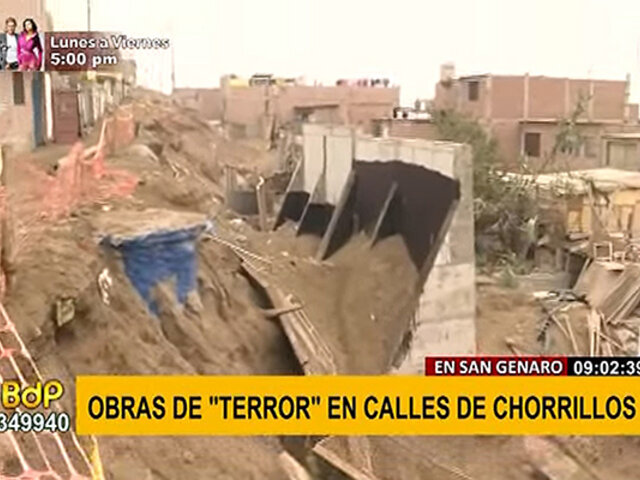 Las obras de mejora urbana no están dando buenos resultados en la zona de San Genaro, Chorrillos. Los vecinos denunciaron que las obras para la construcción de un muro de contención les ha generado diversos problemas, no solo porque se han paralizado los trabajos, sino que representa un grave peligro para la población.