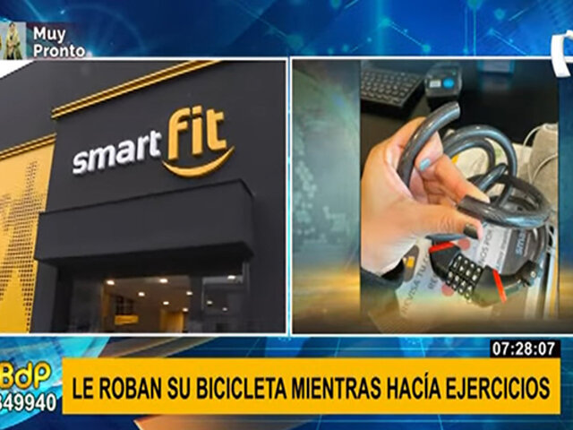 En la cuadra 42 de la avenida República de Panamá, en Surquillo, una joven que acudió al gimnasio Smart Fit sufrió el robo de su bicicleta, pese a que estaba asegurada con un cordón de seguridad junto a otras bicicletas.