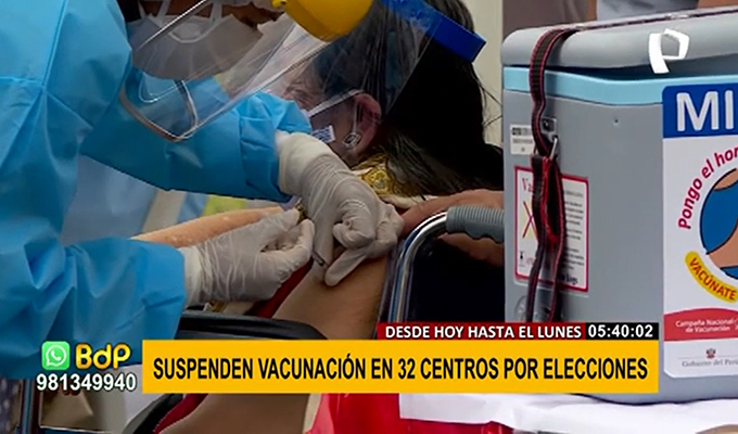 Por las elecciones presidenciales de este domingo se suspenderán las vacunaciones en 32 centros, ya que estos lugares serán usados como locales de votación, además, la medida se tomó para evitar aglomeraciones.