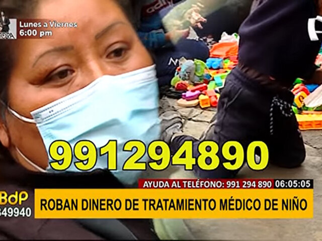 La madre de familia tiene un hijo de solo cuatro años que al nacer fue operado del corazón. Ella juntó el dinero con mucho esfuerzo para continuar con su tratamiento, por lo que solicita que se devuelva su dinero y el teléfono, donde guarda todas las terapias en video. Para cualquier ayuda o información, se puede comunicar al 991 294890.