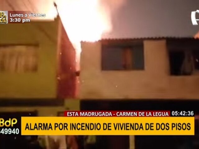 Fuerte susto. Las alarmas se encendieron en el distrito de Carmen de la Legua, luego que se registró un voraz incendio al interior de una vivienda de dos pisos la madrugada de este lunes 28 de junio.