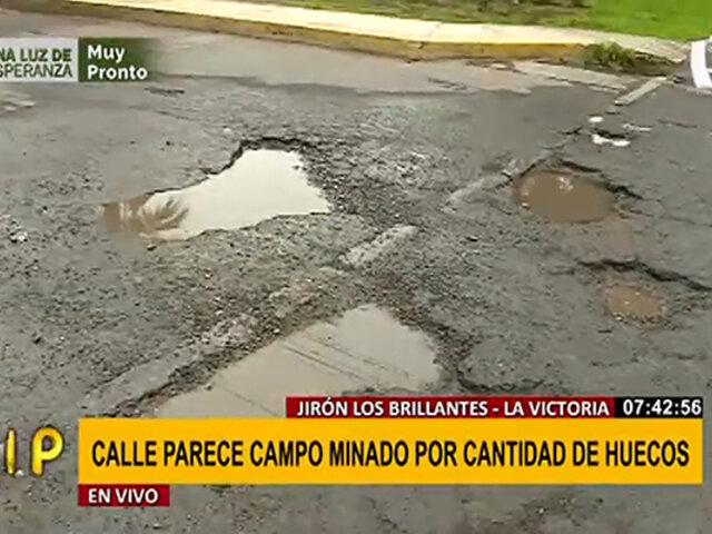 Varios vecinos han mostrado su malestar por la falta de reparación de la vía en jirón Los Brillantes, en el distrito de La Victoria, donde no solo la pista muestra enormes huecos, sino las veredas que se están partiendo y dejan a los transeúntes en peligro de sufrir accidentes.