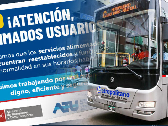 Por su parte el Metropolitano mediante su red social Twitter, señaló que “Todas las rutas alimentadoras se encuentran reestablecidas y brindarán servicios en sus recorridos y horarios habituales”.