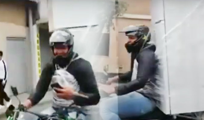 Motociclista lleva refrigeradora atada a su espalada