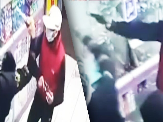En el distrito de El Agustino, se registró en imágenes un brutal asalto a una farmacia de la cadena “Pharmet”. Los hampones ingresan violentamente decididos a todo y rompen con las armas de fuego que llevaban en las manos una mampara de cristal.