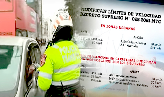 “Se ha aprobado el decreto supremo 025 del Ministerio de Transportes y Comunicaciones (MTC). Este nuevo dispositivo legal define nuevos conceptos como usuarios vulnerables”, manifestó el coronel Mario Villacorta, jefe de Control de Tránsito de la PNP. Añadió que en las zonas escolares se establece el límite en los alrededores del centro educativo, 100 metros a la redonda, y ya no solo la zona donde están los colegios.