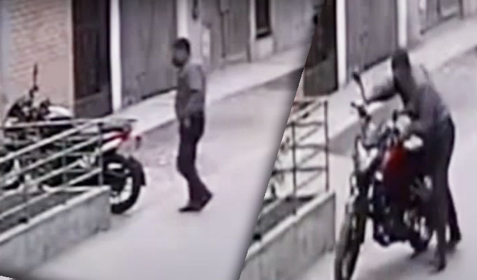 En el primer puerto del Callao, dos ladrones se llevaron una motocicleta que estaba estacionada en el cruce de la avenida Canta Callao con Pascamayo en cuestión de segundos.