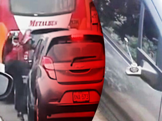 En el distrito de San Miguel, un motociclista rompió los espejos de un auto a patadas. El hombre que estaba furioso interceptó el vehículo en un semáforo.
