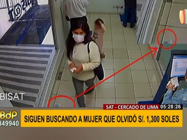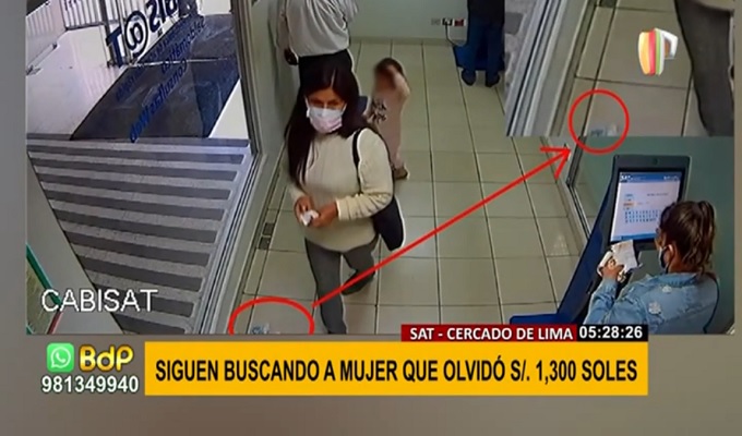 El Servicio de Administración Tributaria (SAT) ha iniciado una campaña de difusión para dar con el paradero de la mujer que olvidó S/ 1. 300, en su sede ubicada en la cuadra 3 del Jr. Camaná, en el Cercado de Lima.