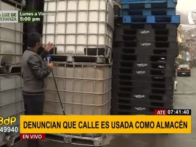 Ate: denuncian que vecino utiliza la calle y parte de la pista como almacén