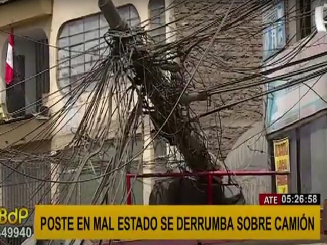 Ate: poste con gran maraña de cables cayó encima de un camión