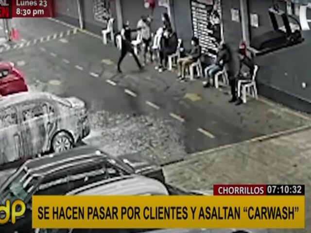 Se hicieron pasar por clientes ingresando a un carwash ubicado en la avenida las gaviotas en el distrito de Chorrillos, a bordo de un vehículo gris, pero su verdadero objetivo era robar todo lo que pudieran a los verdaderos clientes del lugar. en menos 30 segundos.
