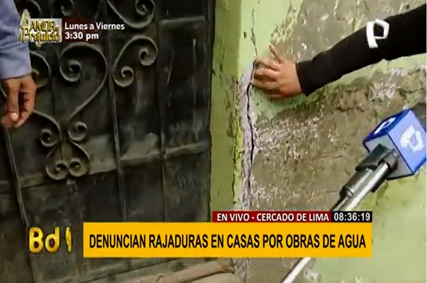 Los vecinos del barrio Primero de Mayo, en el Cercado de Lima, denunciaron, públicamente, a la empresa de servicio de agua y alcantarillado Sedapal, por haber ocasionado que sus casas presenten grietas y pisos abriéndose.