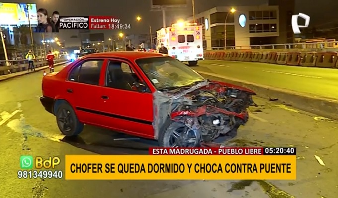 Un conductor salvó de morir luego que se quedó dormido cuando conducía su vehículo. El accidente de tránsito ocurrió en la cuadra 1 de la avenida La Marina, en el distrito de Pueblo Libre.