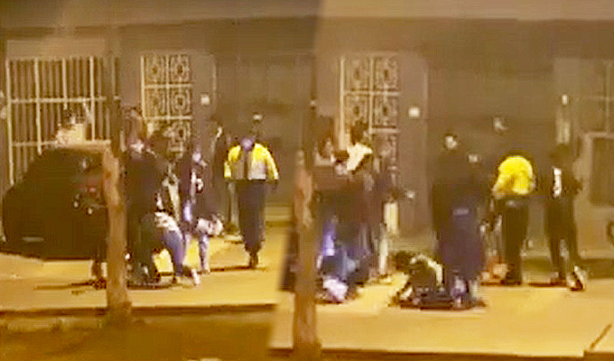 En las imágenes se ve a jóvenes agarrándose a puñetazos y patadas, aparentemente, en estado de ebriedad, sin que nadie pueda detenerlos. La cantidad de personas llegaba a unas 20, las que solo eran vigiladas por un efectivo de seguridad que, ante la multitud, no hizo más que hacer sonar fuertemente su silbato.