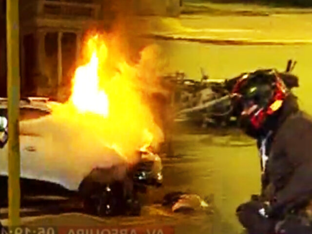 En el Cercado de Lima, en cruce de las avenidas Alejandro Tirado con la Arequipa una moto se estrelló contra una camioneta de alta gama ocasionando que esta arda en llamas. El hecho se registró en horas de la madrugada a una cuadra de la Esquina de la Televisión.