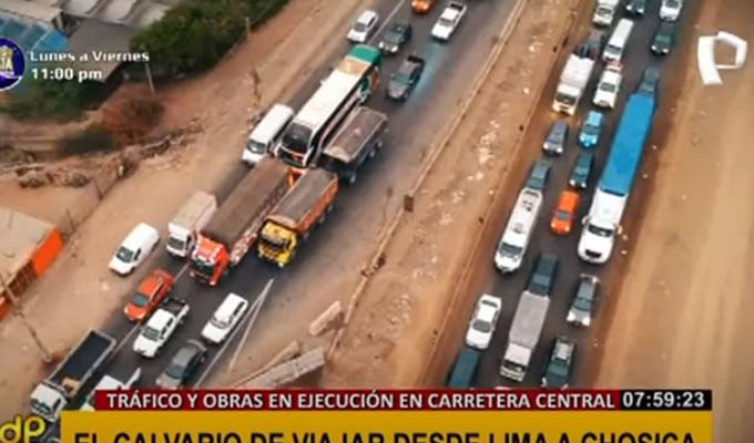 Pese al constante reclamo de los pasajeros y de los conductores, el tráfico en la Carretera Central, en sus diversos tramos, para ir o venir de Lima a Chosica, es intransitable. Miles de personas diariamente pasan hasta tres horas en los vehículos para dirigirse a su destino, mientras las autoridades siguen buscando una solución.