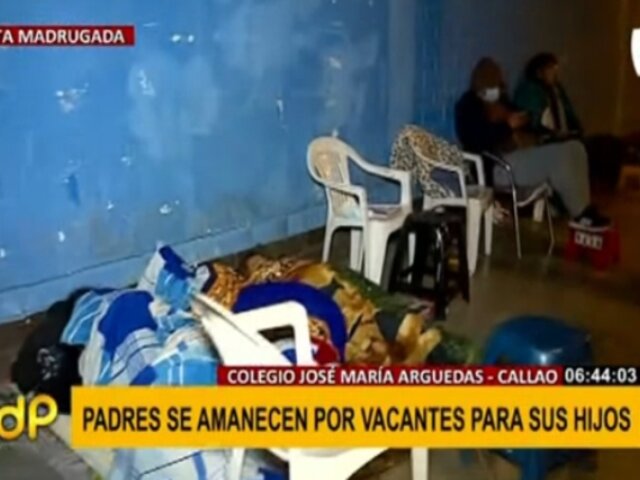 Un grupo de padres de familia se amanecen y realizan colas para obtener una vacante en la Institución Educativa José María Arguedas, en la Urb. Previ, el Callao. Ellos llegaron ayer al mediodía con sillas y mantas para pernoctar en el lugar. Recordemos que el Minedu ratificó que el próximo año iniciarán las clases presenciales.