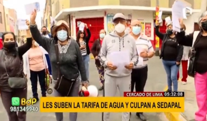 Los vecinos del Asentamiento Humano Santa Rosa de Mirones Altos, en el Cercado de Lima, protestaron con recibos en mano por el incremento en el importe habitual del agua. Muchos de ellos llevan años pagando una tarifa plana y hoy Sedapal está impulsando la instalación de medidores de agua.