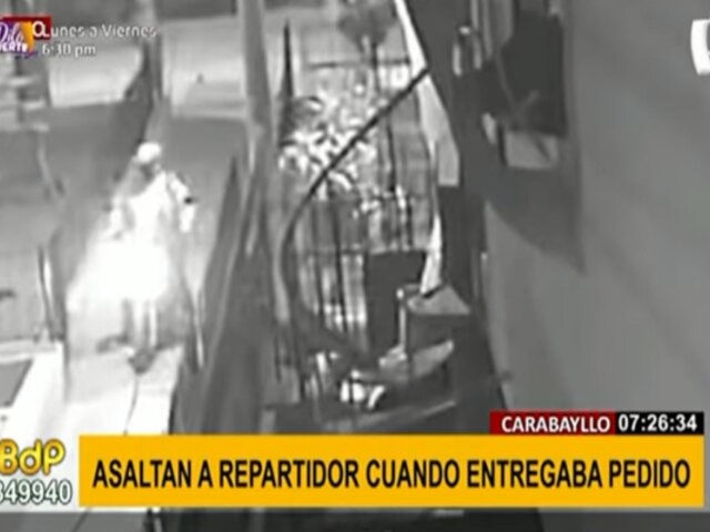 Un repartidor de delivery fue víctima de un asalto cuando esperaba al cliente para entregarle su pedido. Este hecho ocurrió en el pasaje Claridad, en el distrito de Carabayllo. Los delincuentes aprovecharon que el trabajador sacó su celular y lo redujeron de forma violenta arrebatándole sus pertenencias.