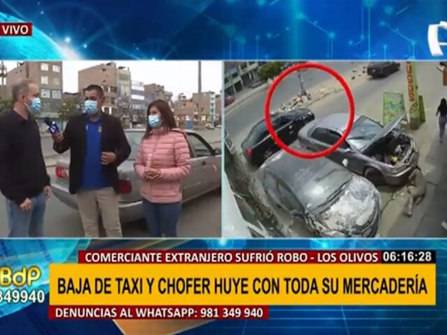 Lamentable. Un comerciante extranjero subió a un taxi en Los Olivos para trasladar mercadería que había comprado hasta su negocio en el Cercado de Lima, y aseguró que el conductor se fue con todos sus productos.