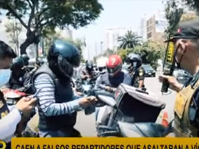 En un amplio operativo, delincuentes disfrazados de repartidores fueron atrapados por la Policía Nacional. Se les encontraron armas de fuego que utilizan para robar y matar a sus víctimas y luego huir a bordo de una moto lineal.
