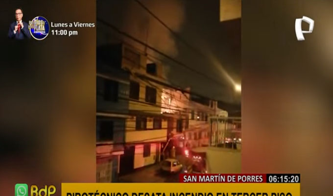 SMP: artefacto pirotécnico provoca incendio en tercer piso de vivienda