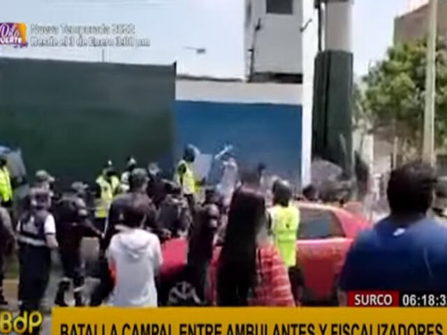 Surco: violento enfrentamiento entre fiscalizadores y ambulantes que se niegan a desalojo
