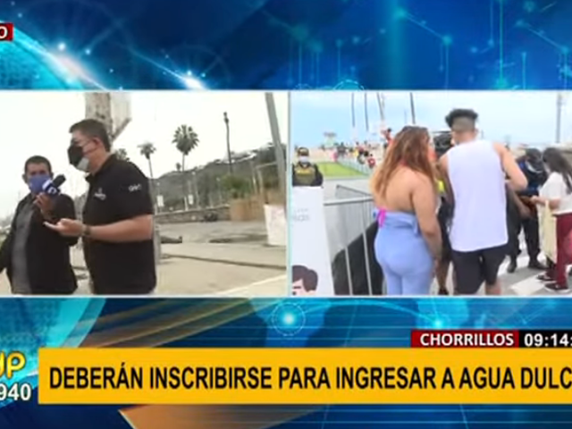 La Municipalidad de Chorrillostomó la decisión de no dejar entrar a ningún bañista a la playa de Agua Dulcesi este no se inscribe en la web playaprogramada.munichorrillos.Gob.pe para separar su ingreso. Se busca evitar que el lugar se convierta en un foco de infección, tras incumplirse con el aforo de más de mil personas.