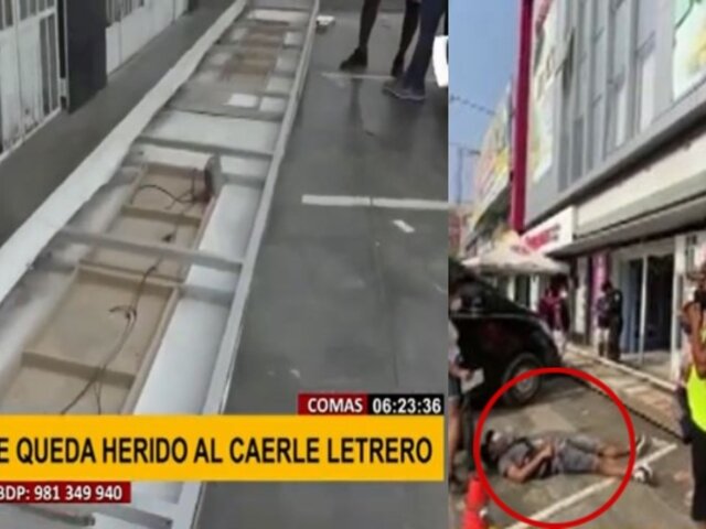Comas: joven quedó herido al caerle enorme letrero y trabajadora justifica que sismo lo aflojó