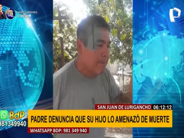 Atentó contra la vida de su propio padre. Marco Antonio Barbieri denuncia que su hijo le rompió la cabeza luego de empezar una discusión al interior de su vivienda en el sector de Campoy en San Juan de Lurigancho. En medio del altercado habría sacado una bala para tratar de intimidad a su padre.