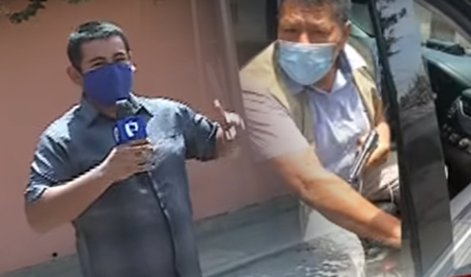 Durante la recreación de un robo al paso de un celular en La Molina, un conductor que no lo sabía, interceptó al periodista Marcos Matías de Buenos Días Perú, que iba en una moto lineal y no dudo en apuntarlo con su arma de fuego, para reducirlo, pensando que se trataba de un “raquetero”.