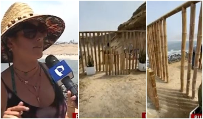 Tal como registraron las cámaras de Panamericana Televisión, residentes han construido palos de bambú como bloqueo para restringir el tránsito entre la Playa El Silencio y Señoritas. "Están restringiendo el paso, y quieren dividir entre playa pública y privada", denuncian.