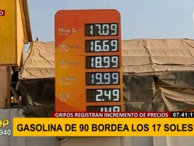 En contraste, desde la Panamericana Norte, nuestro reportero Aarón Rodríguez nos brinda el detalle de los precios en los establecimientos de servicios. La gasolina de 90 octanos está S/16.99 en Primax a la altura de Puente Piedra, mientras que el precio del diésel está S/17.09.