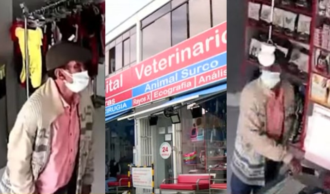 Un astuto adulto mayor ingresó a una veterinaria ubicada en la cuadra 43 de la avenida Tomas Marzano en Surco y se hizo pasar por un recién despedido de su trabajo en la Municipalidad, fingiendo compasión.