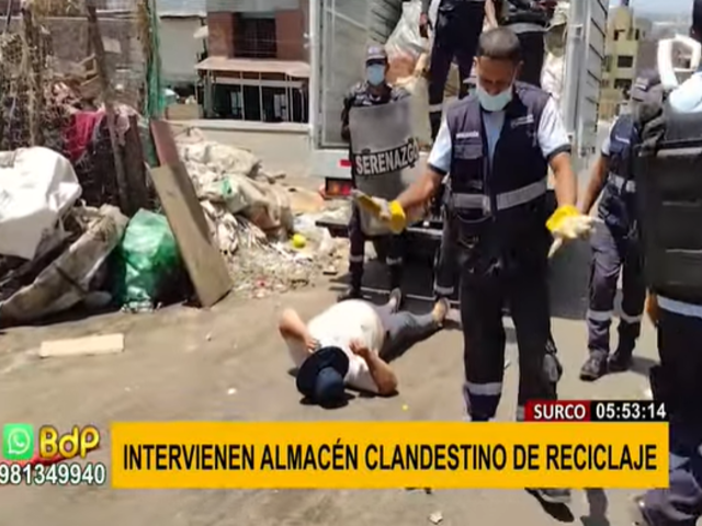 Una mujer fingió un desmayo para detener el decomiso de media tonelada de basura que obstaculizaba la vía pública y no permitía el libre tránsito. Se trata de un centro de acopio clandestino de material reciclable, ubicado en el pueblo joven San Juan de La Libertad, en Surco.