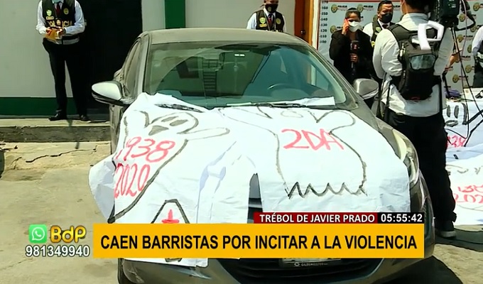 Con el fin de evitar altercados previos al ‘Clásico del futbol peruano’ entre Alianza Lima y Universitario de Deportes, la Policía intervino a cinco integrantes de labarra ‘Trinchera Este U - La Molina’ con 65 afiches de dibujos con fantasmas que recordaban a los hinchas del equipo blanquiazul el descenso a Segunda División en los años 1938 y 2020.