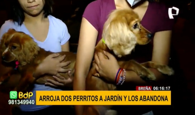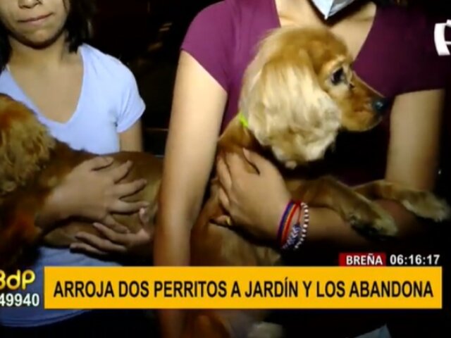 Dos cachorros fueron abandonados por una mujer sin ningún remordimiento. En imágenes se observa cómo toma del cuello a uno de ellos, y con total brutalidad lo lanza a un jardín. Todo ocurrió durante la madrugada del último sábado, en Breña.
