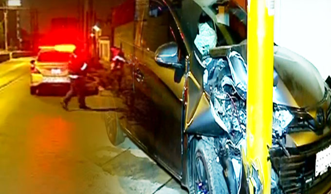 En el distrito de Ate Vitarte, a la altura de la cuadra 10 de la avenida Pedro Ruiz Gallo, un auto chocó contra un poste de telefonía. Según primeros informes solo una persona viajaba en la unidad afortunadamente resultó ileso.